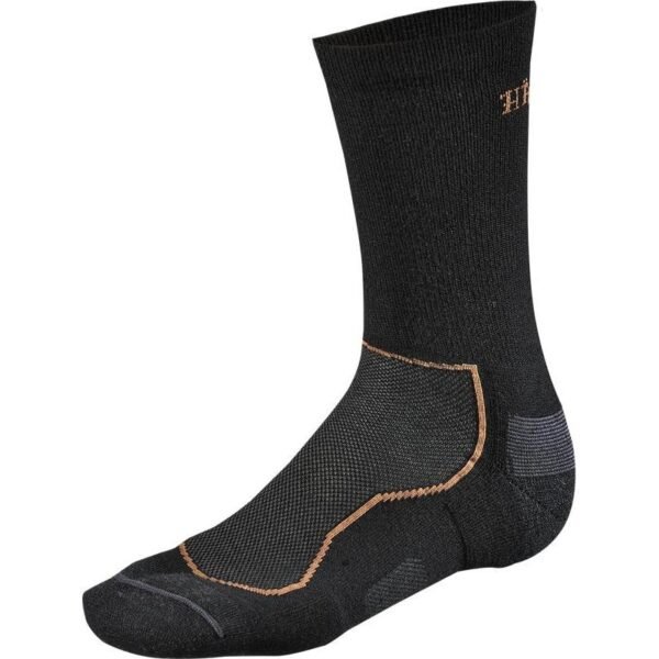 Ces chaussettes de chasse légères et résistantes en laine mérinos sont dotées d’un renfort en polyamide au tendon d’Achille. Elles sont dotées de bandes élastiques sur le mollet, d’une couture plate à la pointe, ainsi que de canaux d’aération pour une évacuation optimale de la transpiration.