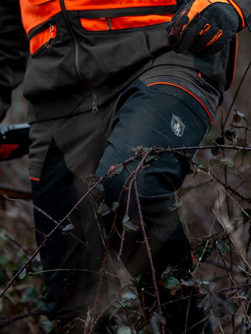 La zone de l’aine est renforcée par des inserts en KETRATEX, qui améliorent la durabilité sans compromettre la souplesse. La technologie THORN SHIELD® assure une protection efficace contre les ronces et les épines, réduisant considérablement les risques de perforation.